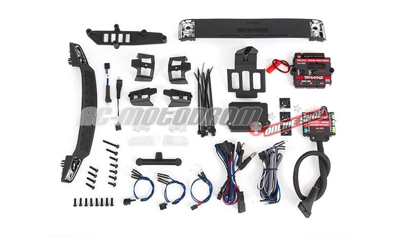 Entwickelt von Traxxas für den direkten Sitz am TRX-4 Sport-Körper mit ordentlicher und sicherer Kabelführung Farbcodierter Stromverteilerblock für einfache und sichere Verbindungen Inklusive Frontgrill und Heckklappe mit integrierten Gläsern Traxxas LED-Beleuchtungsmodul