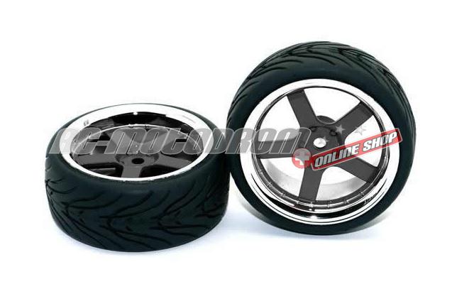 Reifen - 1/10 Touring - montiert - 5-Stars Schwarz/Chrome Felgen - 12mm hex - HRC High Grip Street-V (2 Stk.)