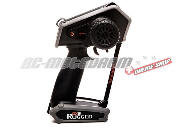 Mutiges und aggressives Styling mit Fokus auf führende Langlebigkeit Basierend auf die ergonomisch perfektionierten SpektrumT DX5 Pro und DX5C Sender Wasserabweisendes Gehäuse schützt vor Spritzwasser